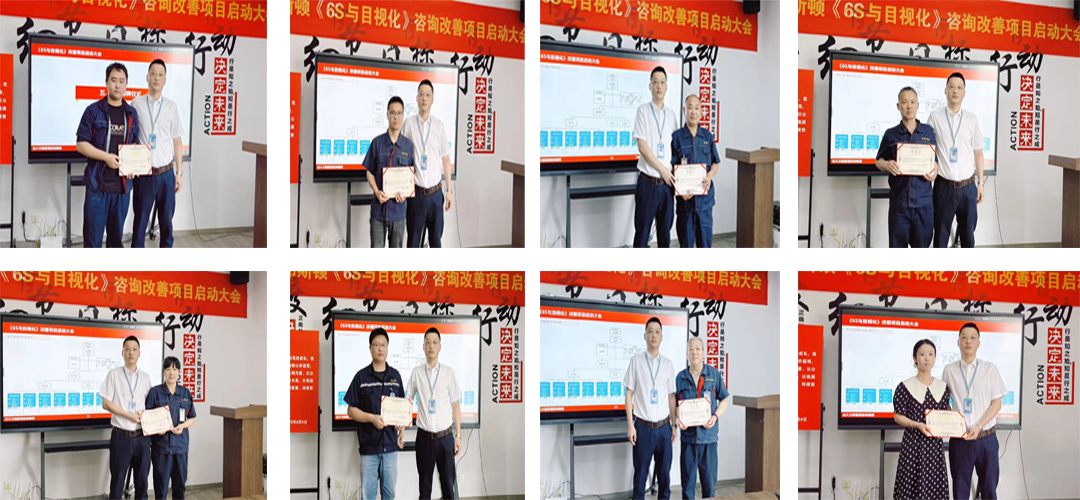 為促進項目的有效落地,明確各崗位職責,強化責任意識,會上張總為遠大方略項目組老師頒發(fā)聘書,為各改善小組成員頒發(fā)任命書。