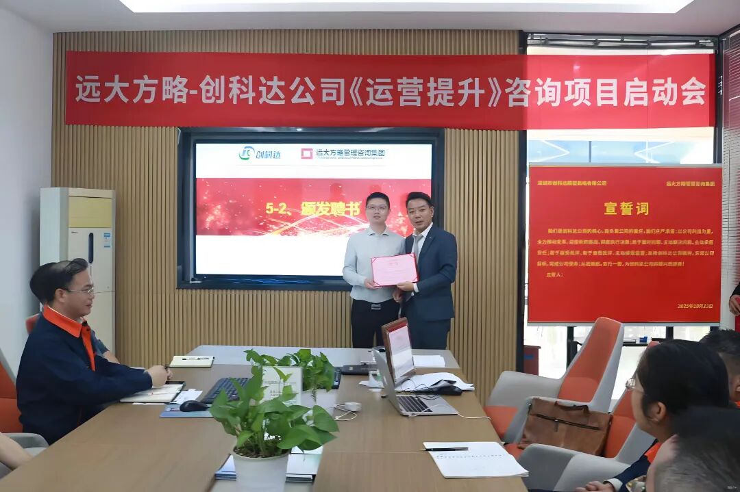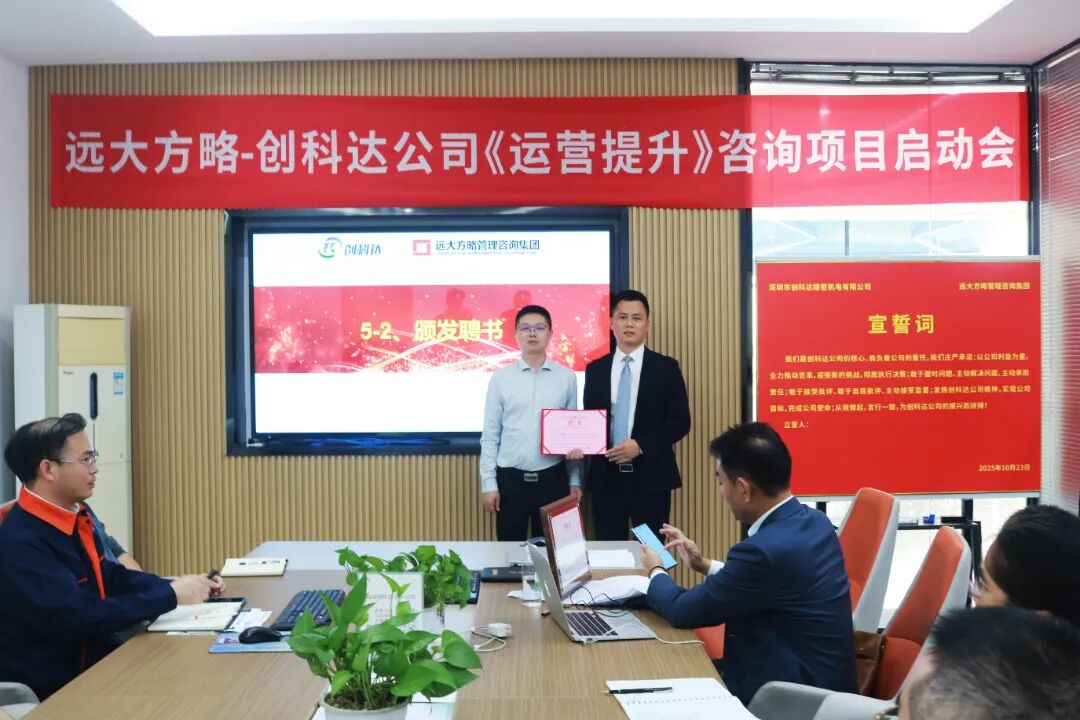 近日,深圳市創(chuàng)科達(dá)精密機(jī)電有限公司(以下簡稱“創(chuàng)科達(dá)”)攜手遠(yuǎn)大方略啟動《卓越運(yùn)營》咨詢項目,進(jìn)行科學(xué)、系統(tǒng)的管理升級,優(yōu)化供應(yīng)鏈管理,減少庫存積壓,提升資金周轉(zhuǎn)率;現(xiàn)場 5S 管理營造干凈整潔的環(huán)境,提高效率與質(zhì)量,降低事故率;完善組織架構(gòu),提升團(tuán)隊管理效率,合理配置資源,提高決策準(zhǔn)確性。全方位提升運(yùn)營管理水平,為企業(yè)高質(zhì)量發(fā)展注入強(qiáng)勁動力。